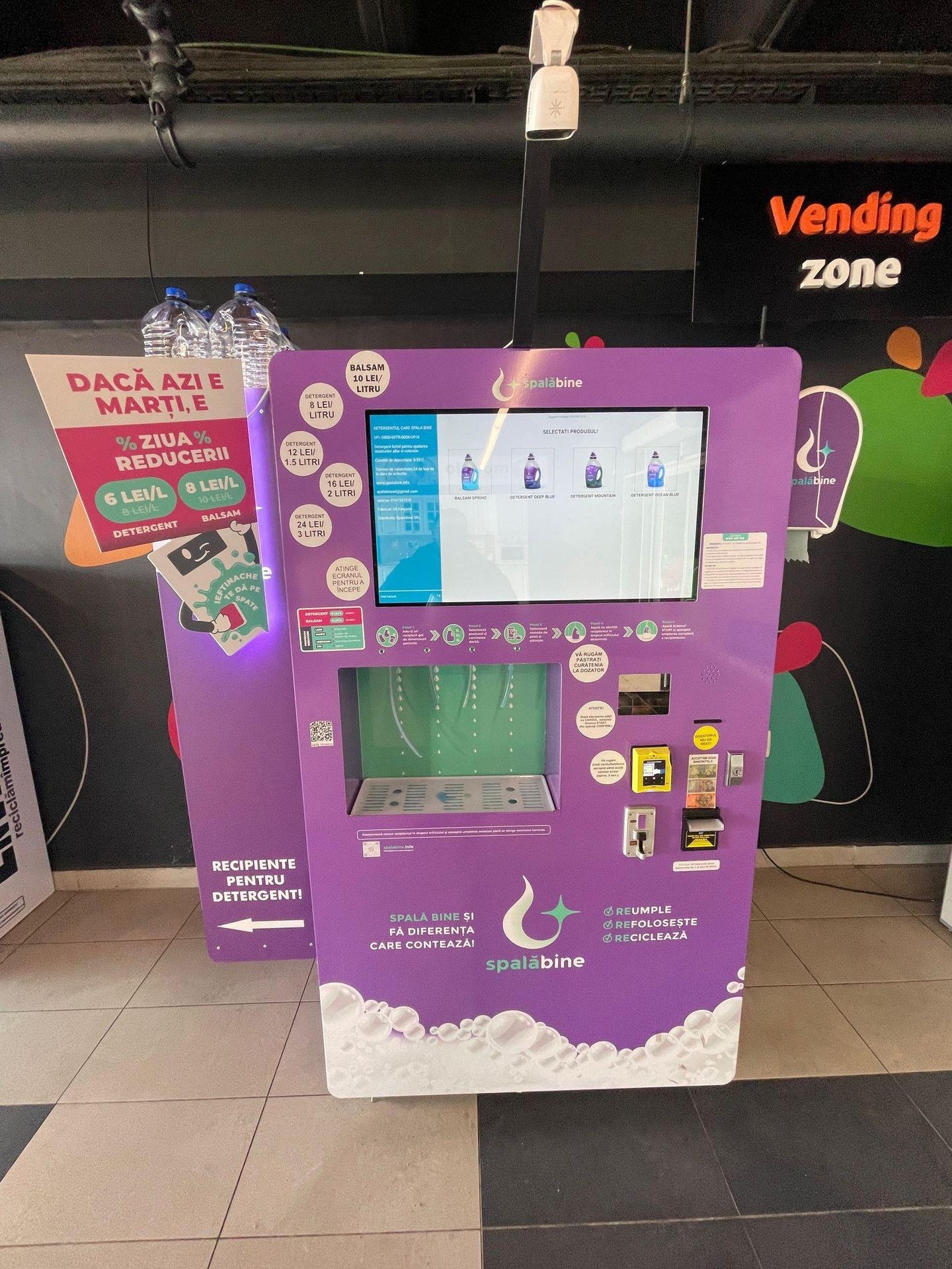 🔹 Termenul de detergent la dozator (self-service sau vending liquid machine) a fost un concept nou pentru piața din România până în 2023, când echipa SpalăBine a deschis prima locație în Cluj-Napoca, în galeria Auchan Iris.
